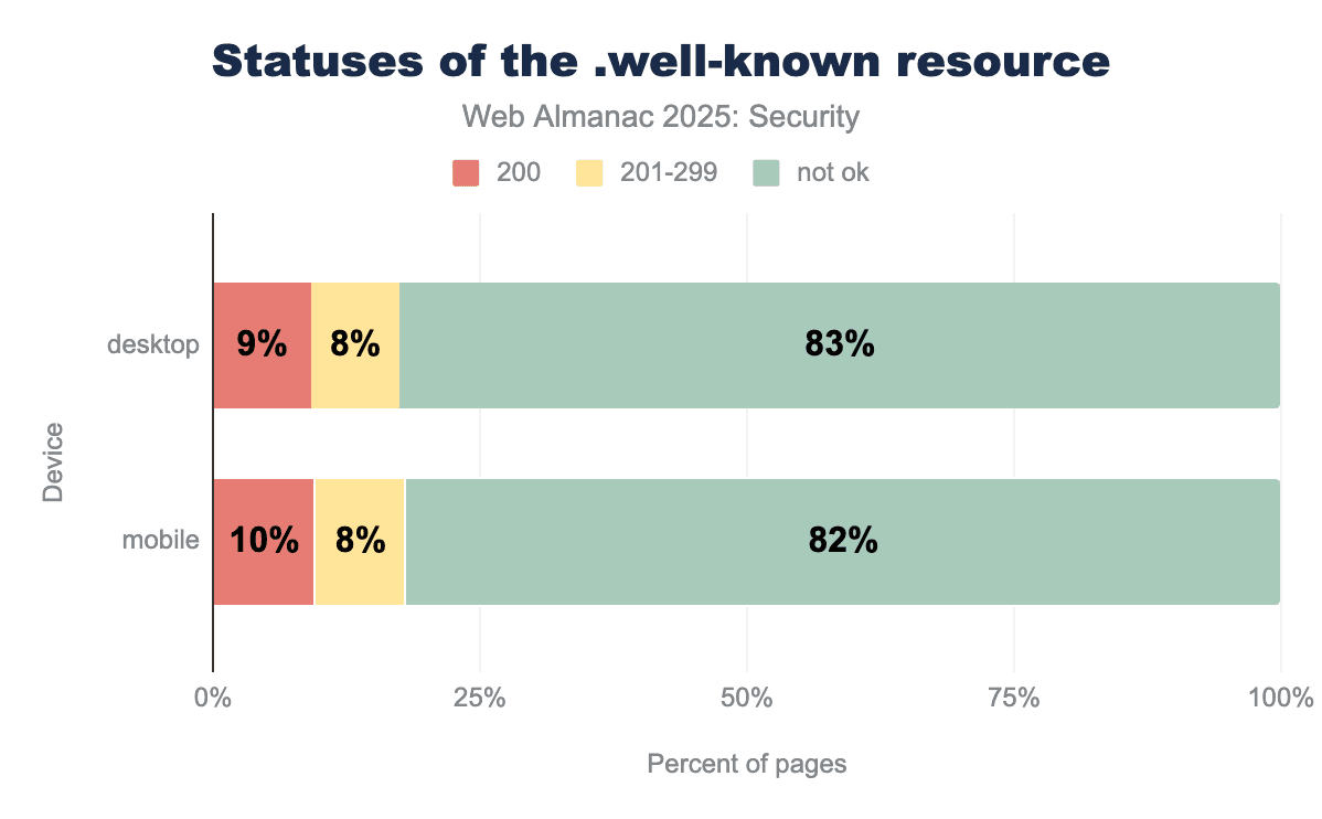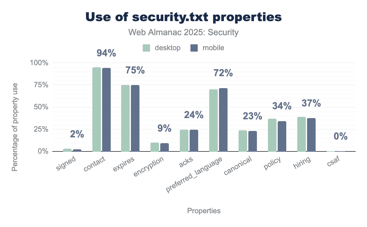 Adoption has increased to 1.82% of desktop and 1.72% of mobile websites, both up from 1% in 2024, showing growing recognition of standardized security disclosure practices.